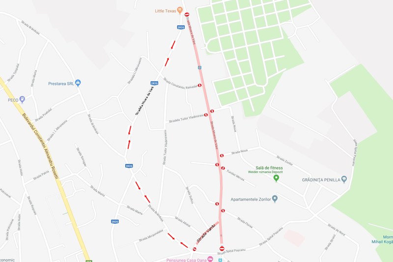 În perioada menționată, traficul rutier pe aceste străzi va fi oprit, iar autovehiculele vor putea circula pe rutele marcate în schița atașată.