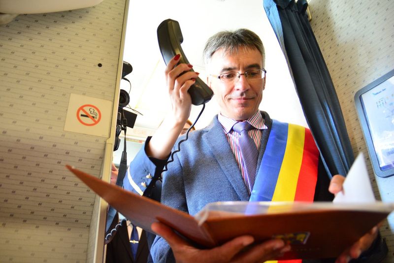 Astfel, unul dintre piloții unei companii aeriene, Valentin Știrbăț, s-a căsătorit cu o ieșeancă, iar cel mai important moment din viața lor a dorit să îl petreacă pe platforma aeroportului, într-o aeronavă a societăţii respective.Pilotul este, la rândul său, ieșean, având o experiență în aviație de şase ani. Cununia celor doi tineri a fost oficiată la bordul aeronavei de către comandantul Liviu Dima, angajat în cadrul aceleași companii, aflat la prima experiență de acest gen.