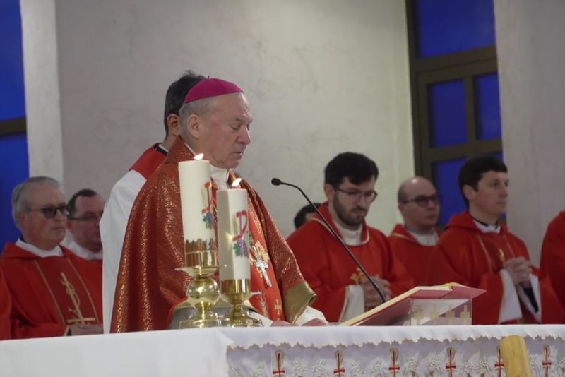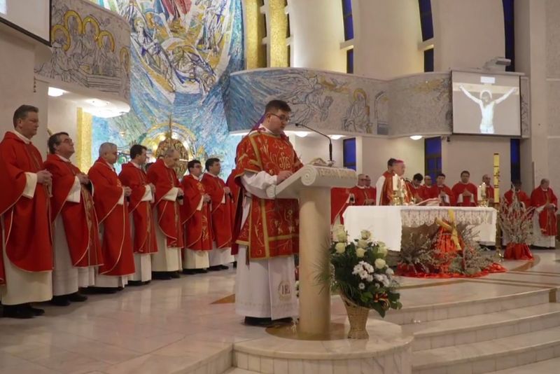 În curtea catedralei, tinerii au fost întâmpinaţi de PS Petru Gherghel, episcop de Iaşi. Aici au fost sfinţite ramurile şi s-a intrat în catedrală. Sfânta Liturghie din catedrala romano-catolică din Iaşi a fost prezidată de PS Petru Gherghel, care a avut un mesaj special pentru tineri. La celebrare a fost prezent şi PS Aurel Percă, episcop auxiliar de Iaşi.