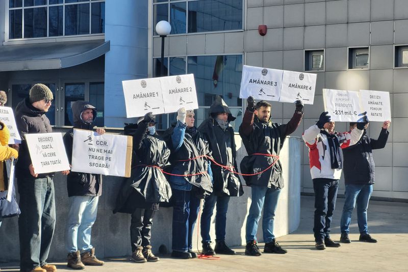 Cu pancarte pe care se putea citi "DECIDEȚI ODATĂ, VĂ CERE ȚARA TOATĂ!" și "DECIZII AMÂNATE, FONDURI RATATE!" au ieșit câțiva cetățeni în față Palatului de Justiție din Iași.