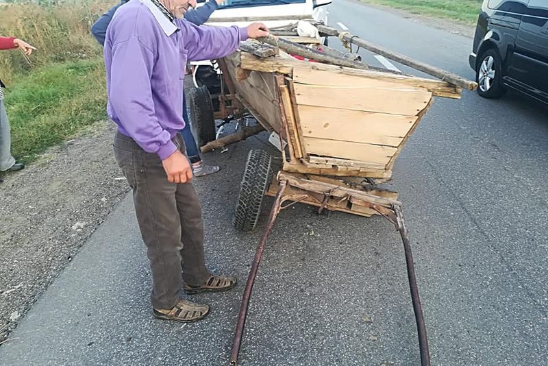 GALERIE FOTO: Accident rutier între un microbuz şi o căruţă