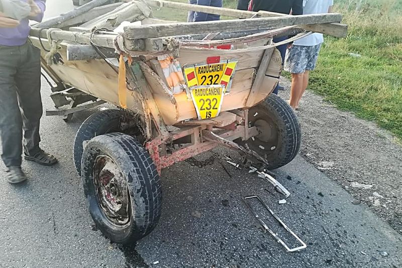 Mai exact, accidentul rutier s-a produs în localitatea Răducăneni, din judeţul Iaşi, prin coliziunea dintre un microbuz marca Mercedes-Benz și o căruță.