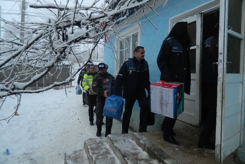 De asemenea, polițiștii au mers, împreună cu Moș Crăciun, la o familie cu zece copii, din comuna Ruginoasa, unde au dăruit alimente, dulciuri și jucării, în speranța de a le aduce zâmbetul pe buze.
