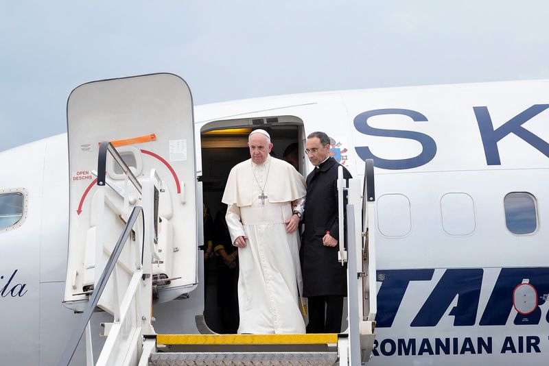 Papa Francisc a ajuns la Iaşi, la Episcopia Romano-Catolică după ce a străbatut centrul oraşului, iar oamenii au strigat de pe margine „Vivat Papa!“.