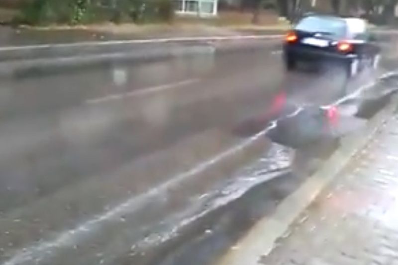 În urma ploii care a căzut astăzi la Iași, străzile s-au umplut cu o spumă de culoare albă.