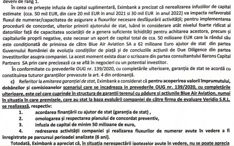 România s-a angajat să se asigure că garanția publică aferentă împrumutului pentru salvare va înceta după șase luni sau că va comunica Comisiei fie un plan de lichidare, fie un plan cuprinzător de restructurare a Blue Air în vederea evaluării ajutorului de stat.
