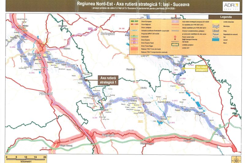 Proiectul, implementat în parteneriat cu județul Suceava, prevede reabilitarea a aproape 170 km de drum de pe teritoriul celor două județe, din care 92 km în Iași.După finalizarea investiției, 22 de comune și orașe din județele Iași și Suceava vor fi conectate la rețeaua trans-europeană de transport (TEN-T).În Iași vor beneficia de noul proiect comunele Rediu, Movileni, Gropnița, Coarnele Caprei, Cotnari, Focuri, Belcești, Ceplenița, Scobinți, Lespezi, Sirețel iar la Suceava, axa rutieră va traversa comunele Ipotești, Bosanci, Udești, Stroiești, Dărmănești, Todirești, Moara și Șcheia, orașele Dolhasca și Liteni și municipiul Suceava.Concret, la finalul celui mai important proiect de infrastructură din regiune, peste 800.000 de locuitori vor avea drumuri reabilitate.