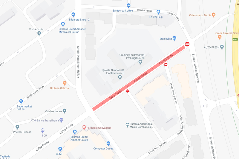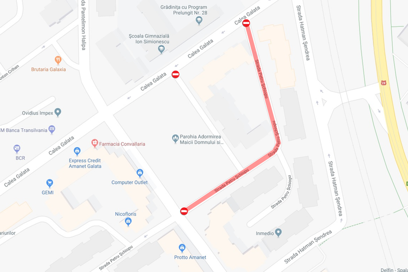 - strada Petru Șchiopu (tronsonul marcat) din Galata, de marți, 4 septembrie, până vineri, 7 septembrie;