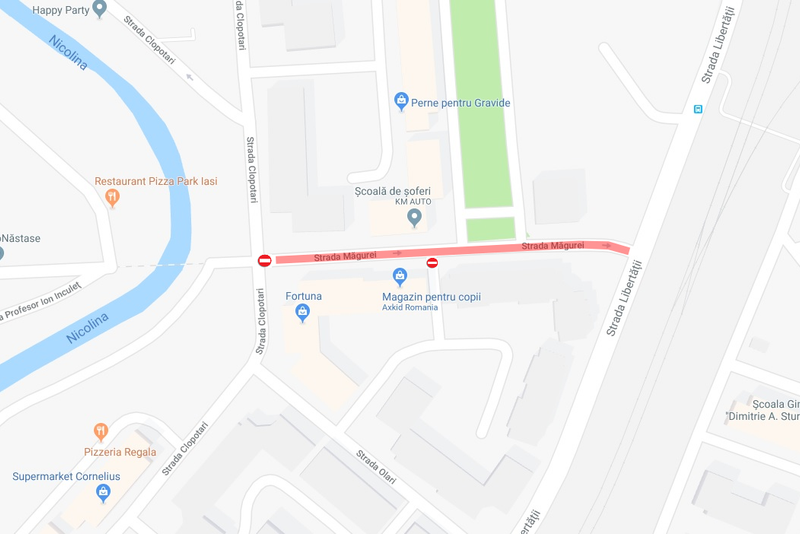 - strada Măgurei (tronsonul marcat) din Nicolina II, de luni, 3 septembrie, până joi, 6 septembrie;