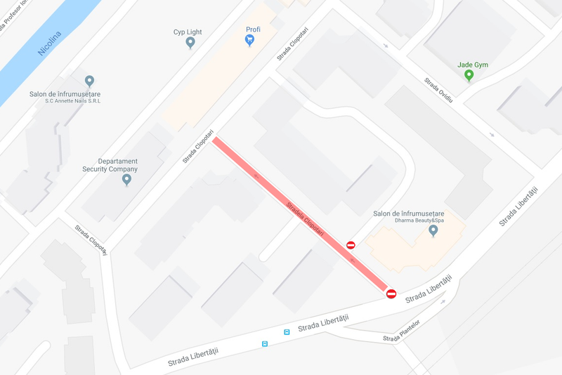 - stradela Clopotari (tronsonul marcat) din Nicolina II, de vineri, 7 septembrie, până miercuri, 12 septembrie.