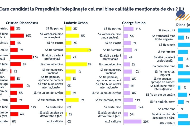 Întrebați ce își doresc de la viitorul președinte, majoritatea respondenților au indicat „să fie cinstit”, „să fie patriot” și „să fie om de cuvânt”.