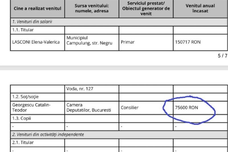 Potrivit declarației de avere depusă de Elena Lasconi, Georgescu a câștigat, în 2019, suma de 700 de lei pe lună ca avocat. Facsimil din declarația de avere din 2020 pe anul 2019 a doamnei Lasconi.