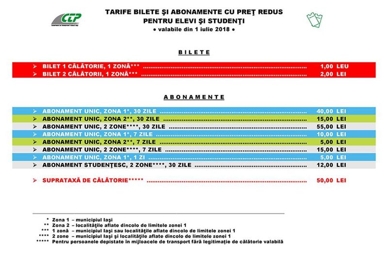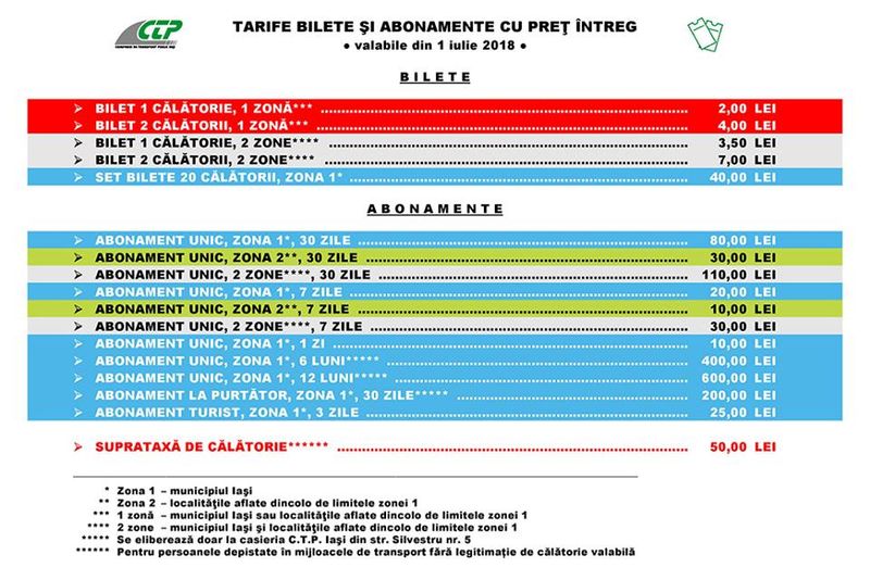 „Un nou sistem tarifar pentru transportul public din Iaşi începând cu data de 1 iulie 2018. Modernizarea transportului public implică şi reorganizarea sistemului de taxare, care trebuie să răspundă nevoilor de deplasare şi cerinţelor călătorilor, dar şi aşteptărilor operatorului de transport.Flexibilizarea ofertei aduce avantaje de ambele părţi şi echilibru în relaţia dintre clienţi şi companie.Adoptarea conceptelor de abonament unic (fiecare tip de abonament este valabil pe toate traseele) şi zonare tarifară (diferenţierea tarifelor pentru deplasarea în interiorul oraşului şi în afara graniţelor sale) este un pas important către o mai bună gestionare a serviciului de transport public: vor putea fi reconfigurate traseele, iar parcul de vehicule va fi utilizat eficient, fără a afecta mobilitatea călătorilor.Începând din 1 iulie 2018, #CTP Iași pune la dispoziția călătorilor un nou sistem tarifar, care va permite atingerea acestor obiective”, a anunţat CTP Iaşi pe pagina de Facebook.Iată noul plan tarifar şi harta zonelor de interes: