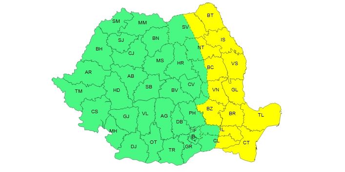 VREMEA 12 OCTOMBRIE. COD GALBEN DE VÂNT ȘI PLOI