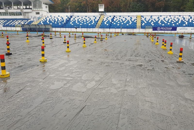 La Stadionul "Emil Alexandrescu", din Iaşi, lucrările pentru schimbarea gazonului sunt în plină desfăşurare.